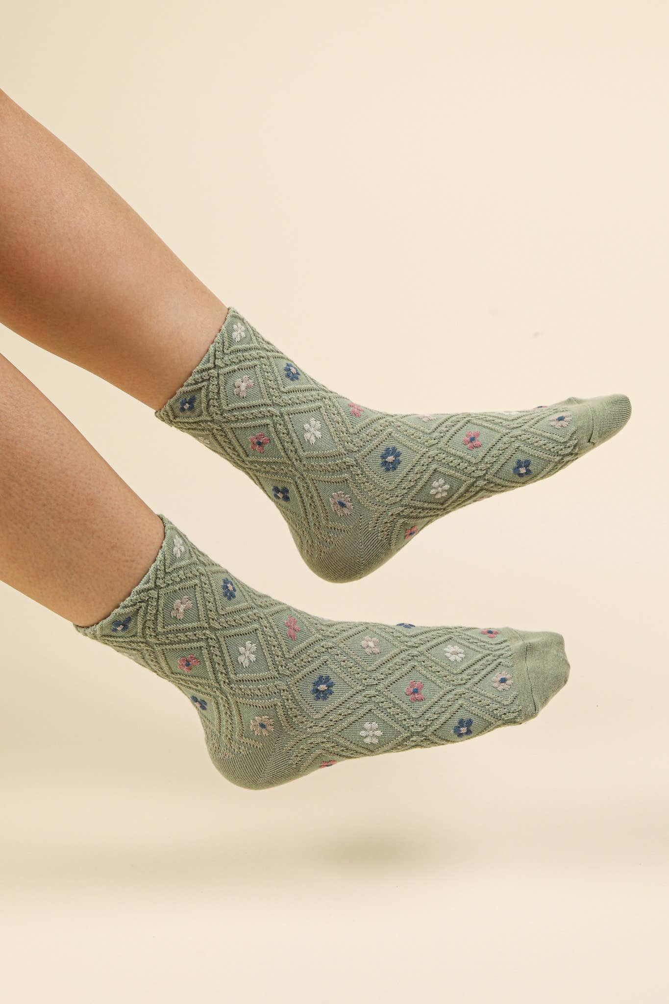 - Floral Printed Textures Crew Socks - Multi Colors (One size)